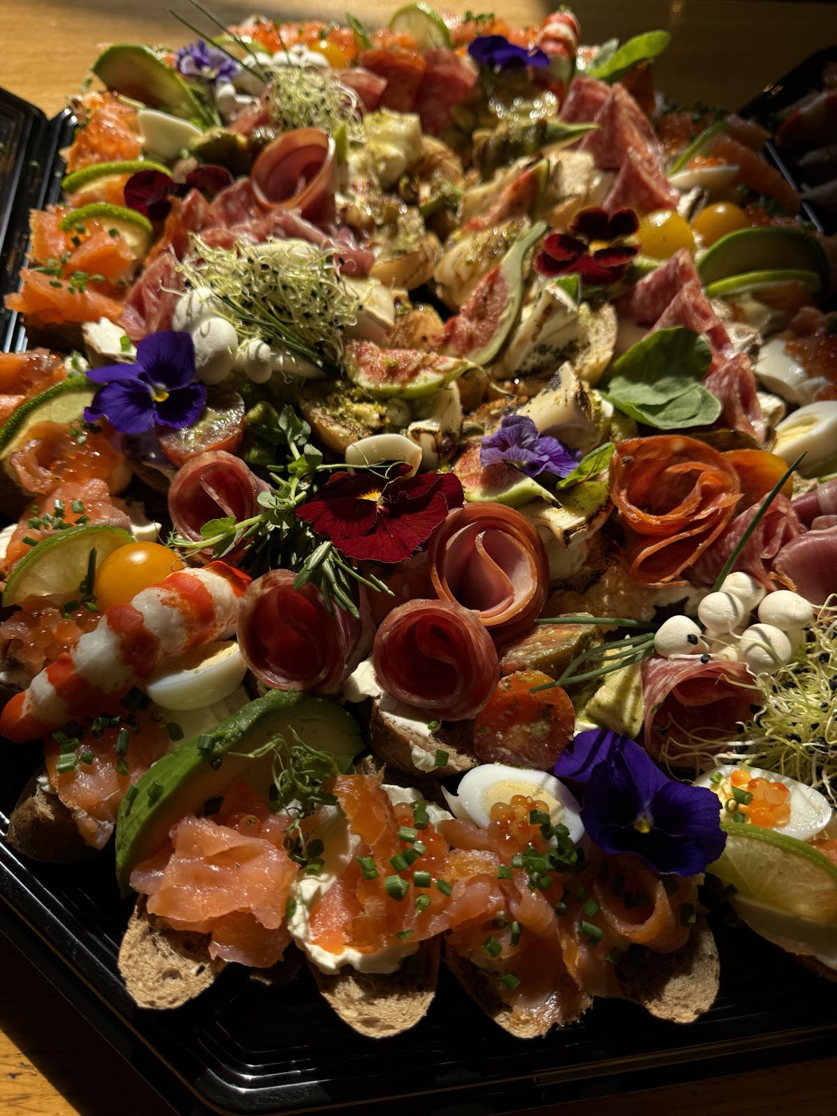 БРУСКЕТКА,МУС СЪС СИРЕНЕ ФИЛАДЕЛФИЯ,РАЗЛИЧНИ ВИДОВЕ КОЛБАСИ,ЧЕРИ,РУКОЛА